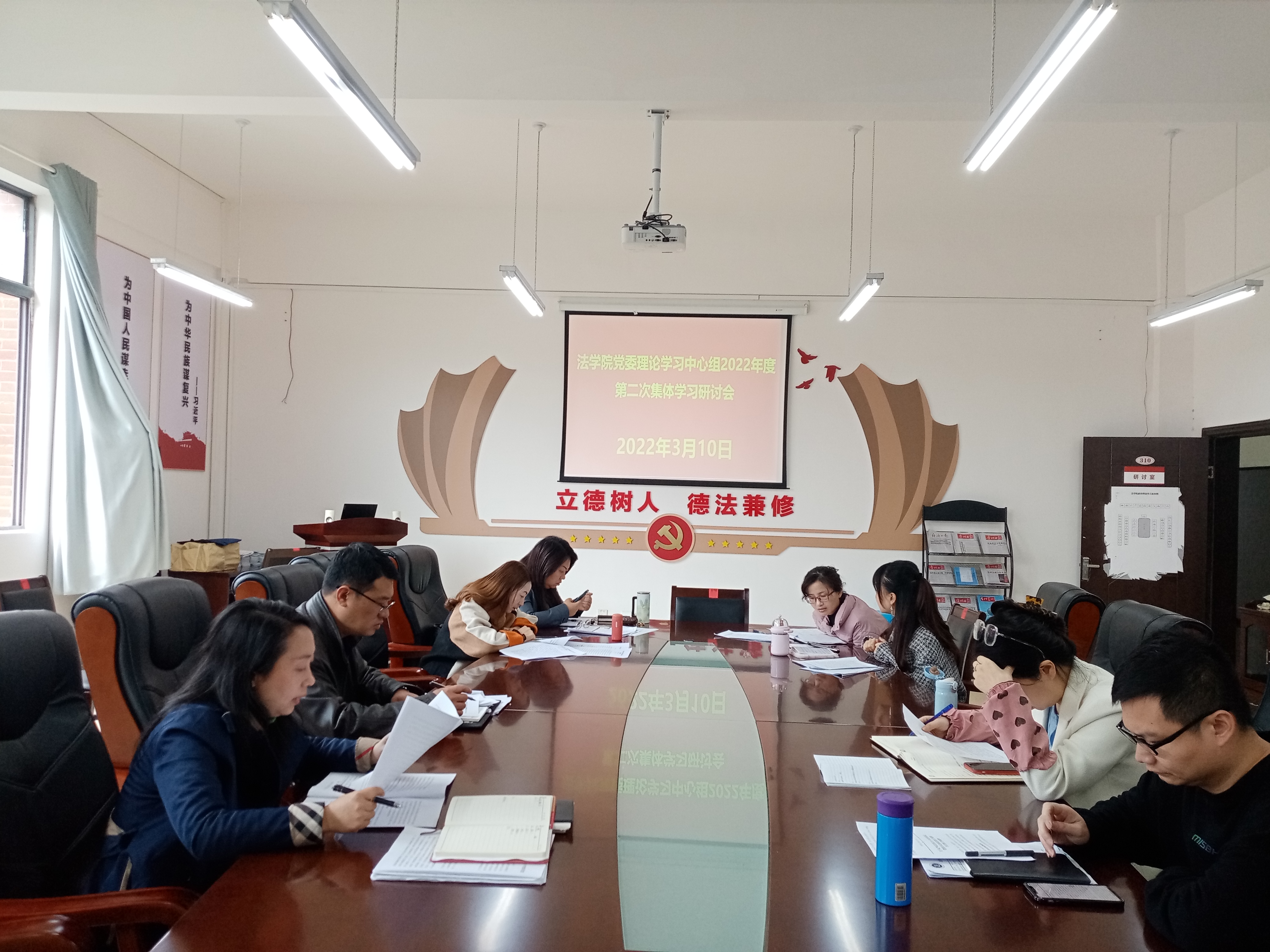 (法学院 图文/报道 徐方)2022年3月10日上午,法学院党委理论学习中心组在文德楼A8-310会议室围绕“国发〔2022〕2号文件精神”专题集中学习研讨。学院领导及全体行政人员、支部书记参加会议。学院党委书记詹伟主持会议。