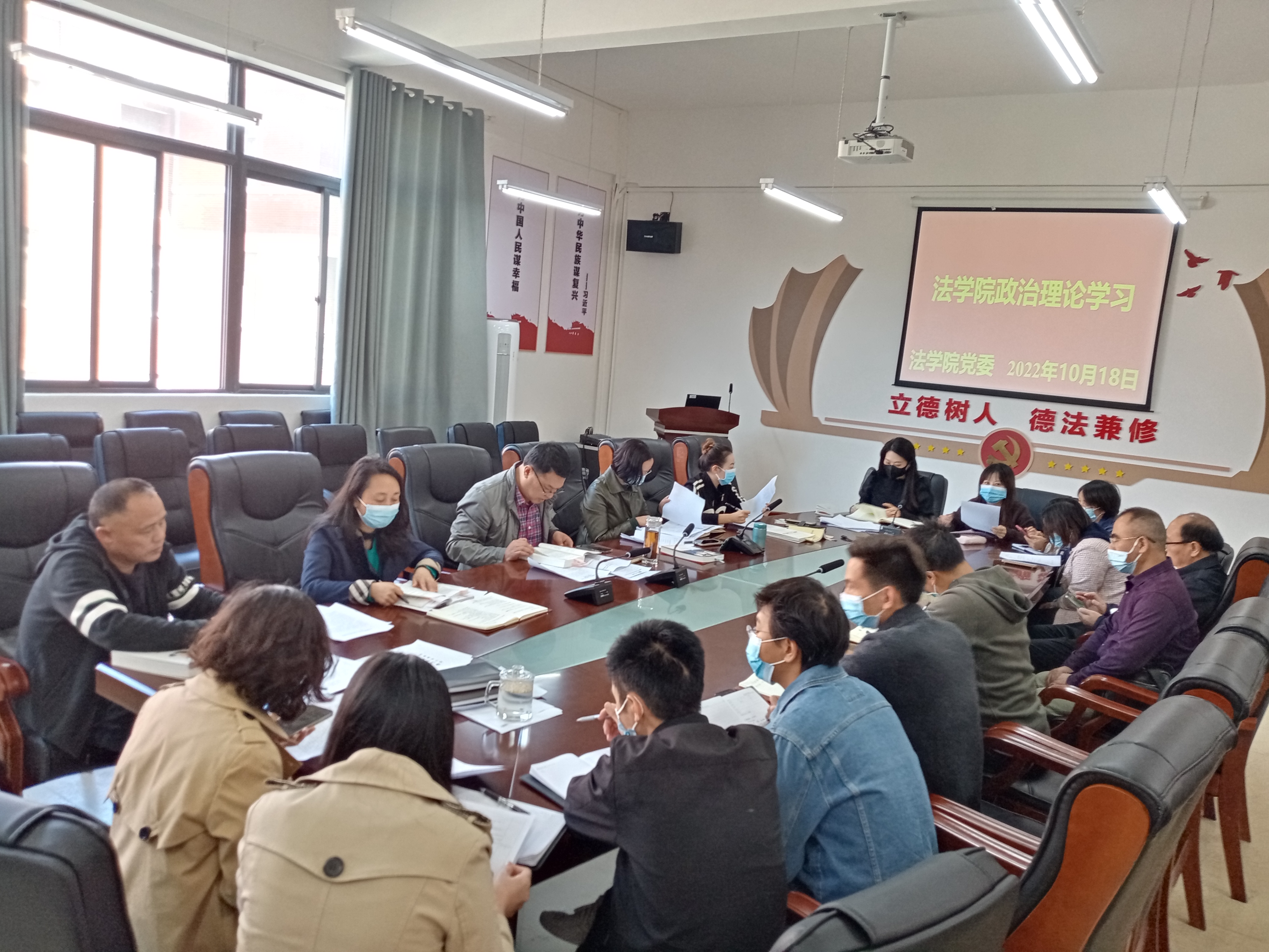 (法学院 图文/报道 徐方)2022年10月18日,法学院党委通过线上线下相结合的方式围绕“《习近平谈治国理政》第四卷选篇暨法学院‘三统筹’工作”专题组织召开本年度第十二次教职工政治理论集体学习研讨会议。院领导及全院教职工出席会议,院党委书记詹伟主持会议。