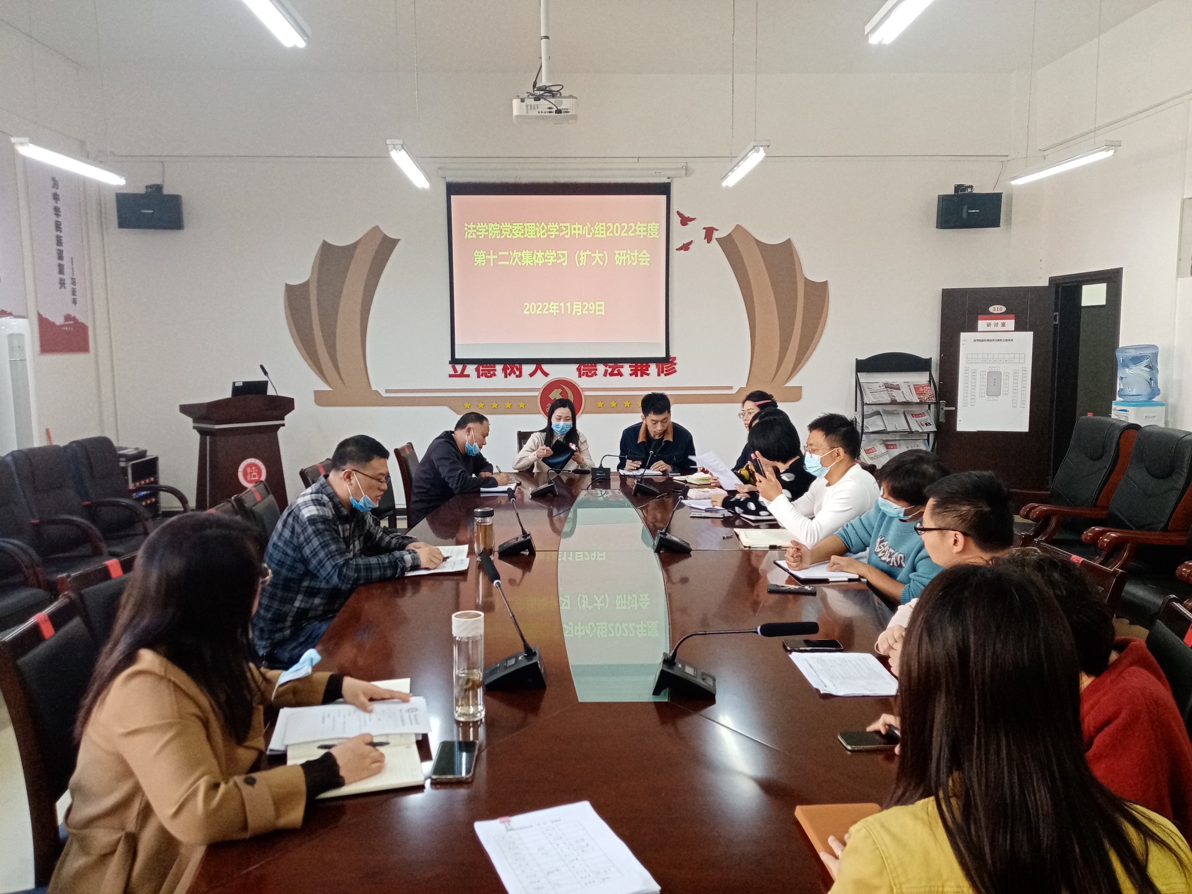 (法学院 图文/报道 徐方)2022年11月29日上午,法学院党委理论学习中心组围绕“习近平总书记关于宣传、意识形态安全的重要论述”开展集中学习研讨。学院领导及全体行政人员、支部书记参加会议,学院党委书记詹伟主持会议。