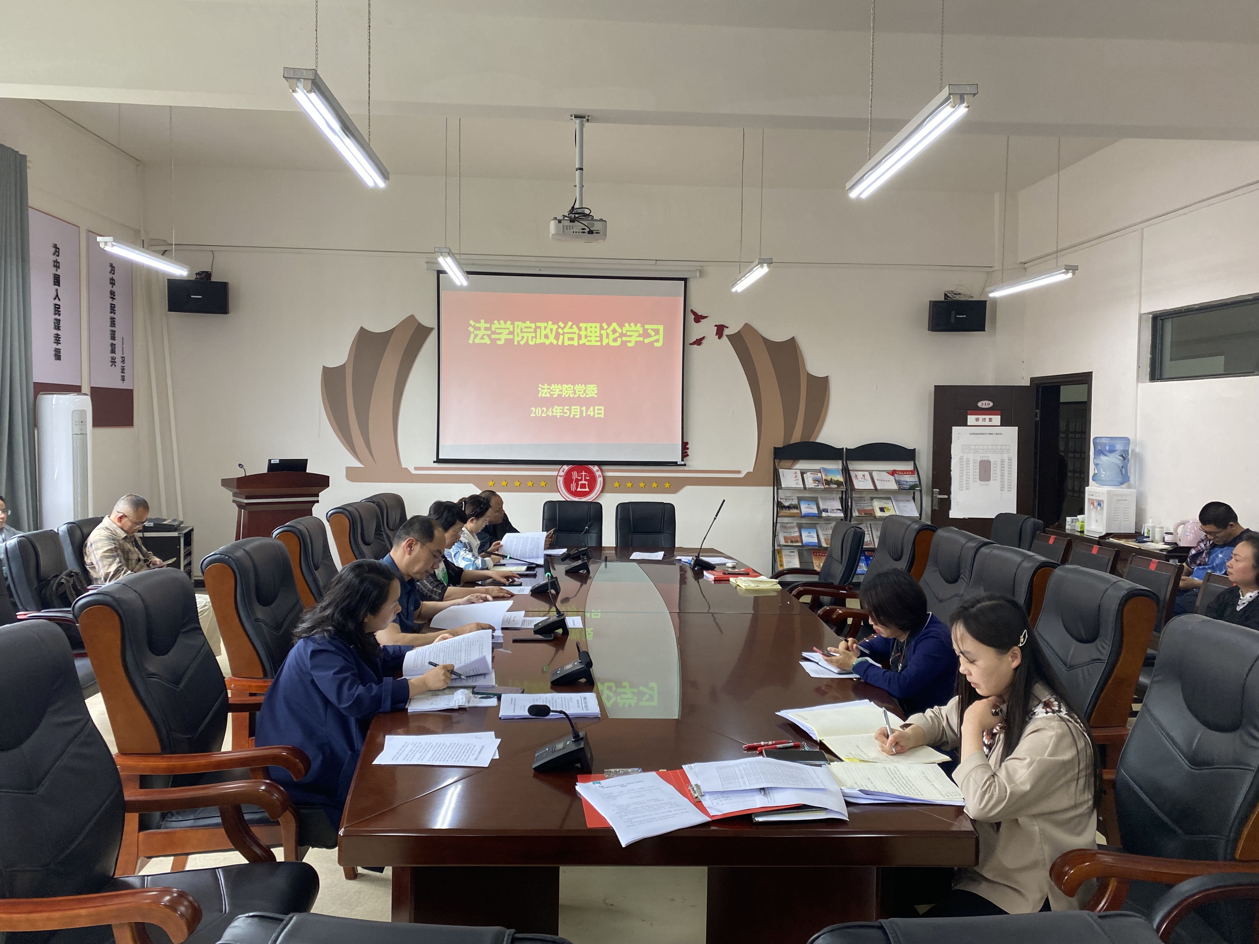(法学院 莫丹洵 报道|摄影 )5月14日下午,法学院党委组织召开2024年度第四次教职工政治理论集体学习习近平法治思想及重要法规研讨会。院领导及全院教职工出席会议,院党委书记邵新顺主持会议。
