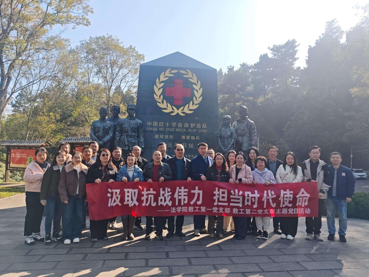 (法学院 梁阿敏 图文报道)2025年11月25日,法学院教工第一党支部、教工第二党支部赴森林公园图云关抗战纪念馆开展以“汲取抗战伟力 担当时代使命”为主题的党日活动。通过实地参观、重温历史、交流研讨等方式,教育引导党员教师传承红色基因、厚植家国情怀,把爱国之情、报国之志转化为推进教育事业和依法治国实践的实际行动。