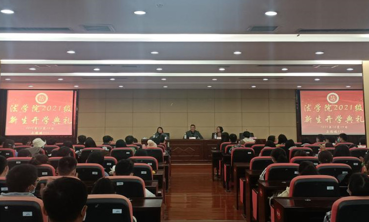 10月19日下午,法学院2021级新生开学典礼暨新生入学教育在正德楼115报告厅举行,校党委副书记朱克乾出席并讲话,法学院党委副书记彭华主持。参加开学典礼的还有法学院副院长(正处级、主持工作)陈玉梅、学院教师及300余名新生。