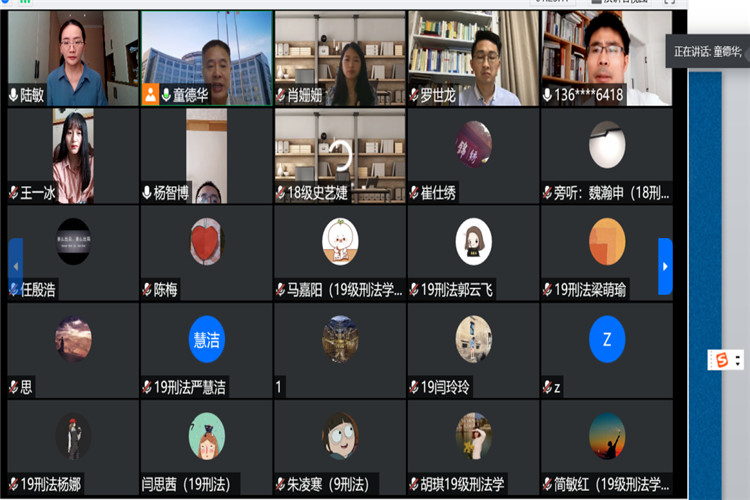 (文:陆敏、马嘉阳  图:马嘉阳(中南财经政法大学研究生会))2020年6月20日,我院法学系青年教师陆敏参加由中南财经政法大学刑事司法学院主办,中南财经政法大学刑法学科、中南财经政法大学诉讼法学科、中南财经政法大学东盟刑事法研究中心以及中南财经政法大学刑事司法学院研究生会承办的“公共卫生突发事件中刑法机能的实现”学术研讨会。本次参会的成员有来自华中师范大学、湖南师范大学、上海政法学院、贵州民族大学、贵州财经大学、广西梧州学院等省内外高校的教师及其博士、硕士研究生。