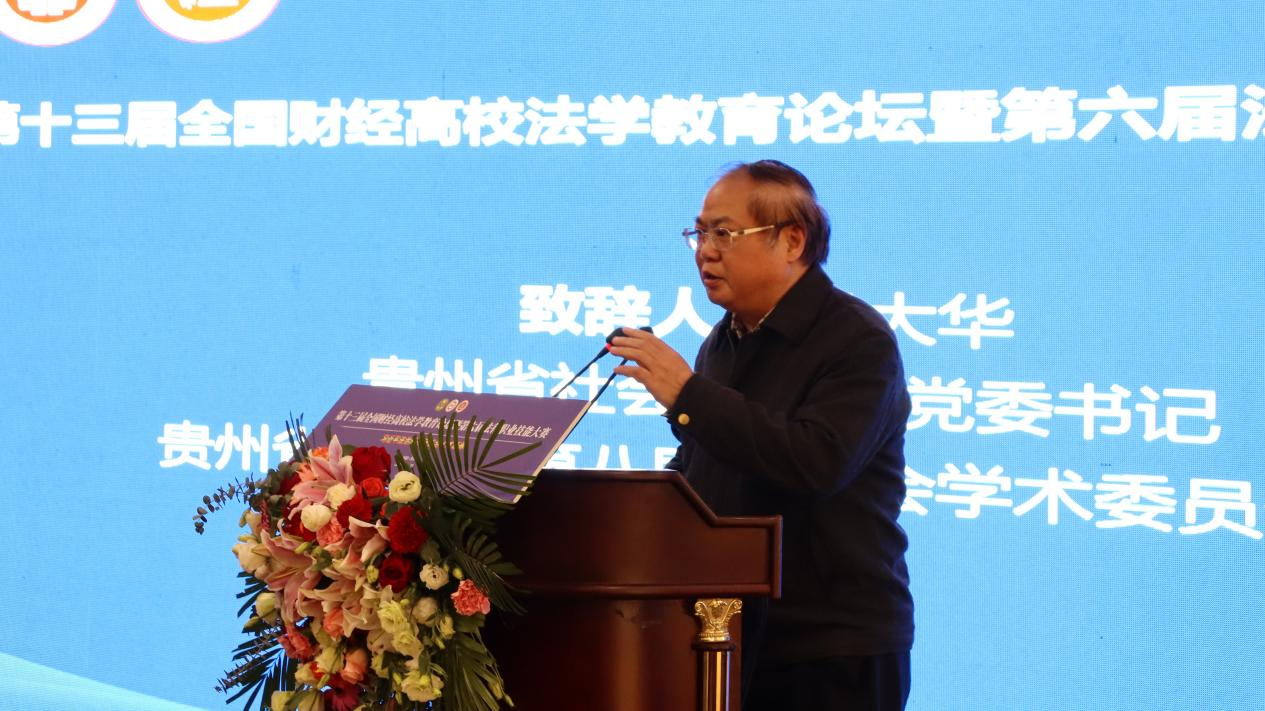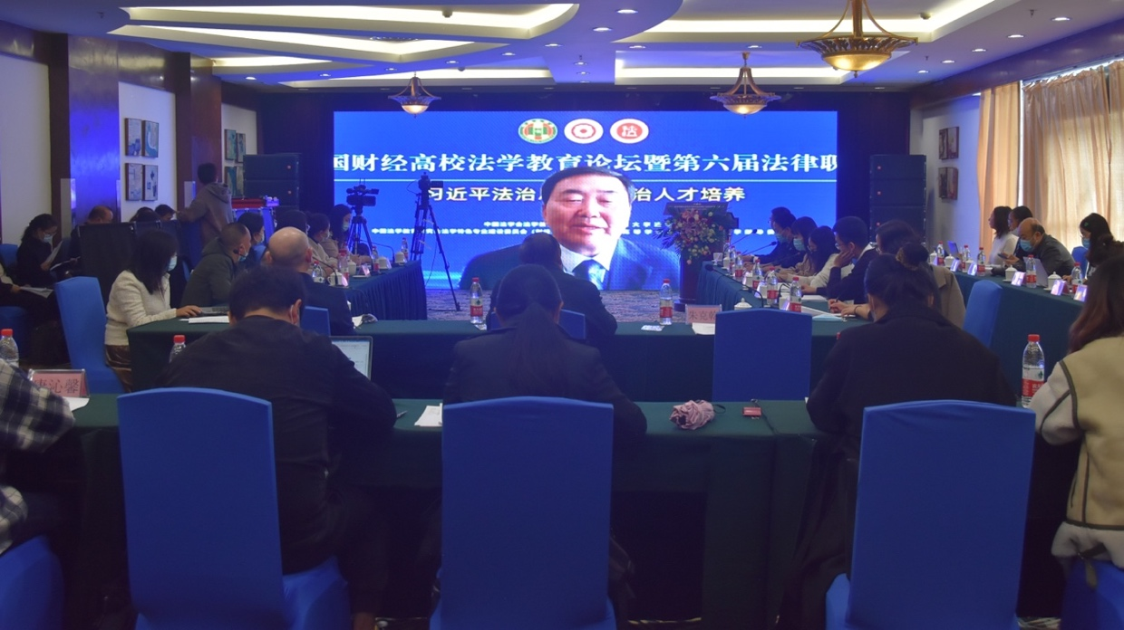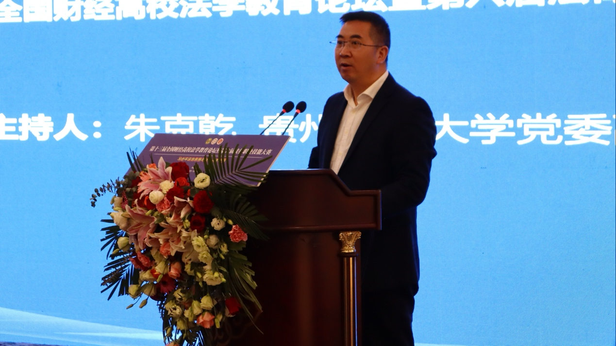 (梁阿敏 报道|摄影 米钰)2021年10月30日,我院承办的第十三届全国财经高校法学教育论坛暨第六届法律职业技能大赛在贵州贵阳花溪迎宾馆隆重举行。本次论坛由中国法学会法学教育研究会与中国法学会法学教育研究会法学特色专业建设委员会(财经类院校)主办。贵州财经大学党委书记刘雷、副书记朱克乾,中国法学会法学教育研究会副会长王健,中国法学会法学教育研究会法学特色专业建设委员会(财经类高校)副主任委员马跃进,贵州省社会科学院党委书记吴大华等嘉宾出席了本次论坛。此次论坛以“习近平法治思想与法治人才培养”为主题,来自全国35所财经高校法学院的专家学者共5000余人次以线上线下的方式共聚一堂,就贯彻落实习近平法治思想与法治才培养展开了充分研究与热烈讨论。