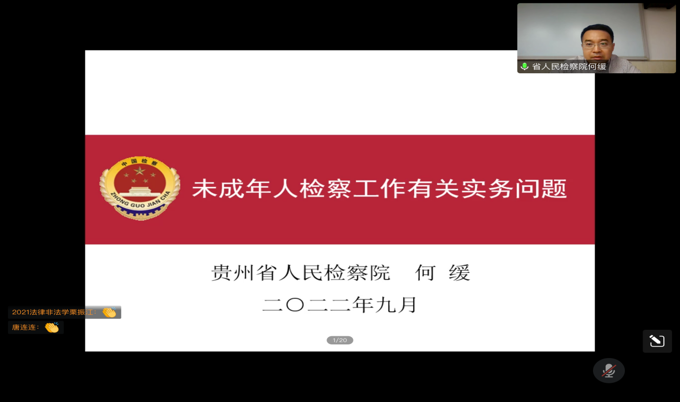 (法学院 图文/报道 钟佳昕)9月30日下午,由法学院承办的“未成年人检察工作有关实务问题”讲座通过腾讯会议举行。本次讲座由贵州省人民检察院第一检察部副主任、四级高级检察官何缓主讲。乐竞在线注册党委委员、副教授宋昭澜主持会议。法学院本科生、研究生及会计、工商管理等专业学生300余人次线上聆听。