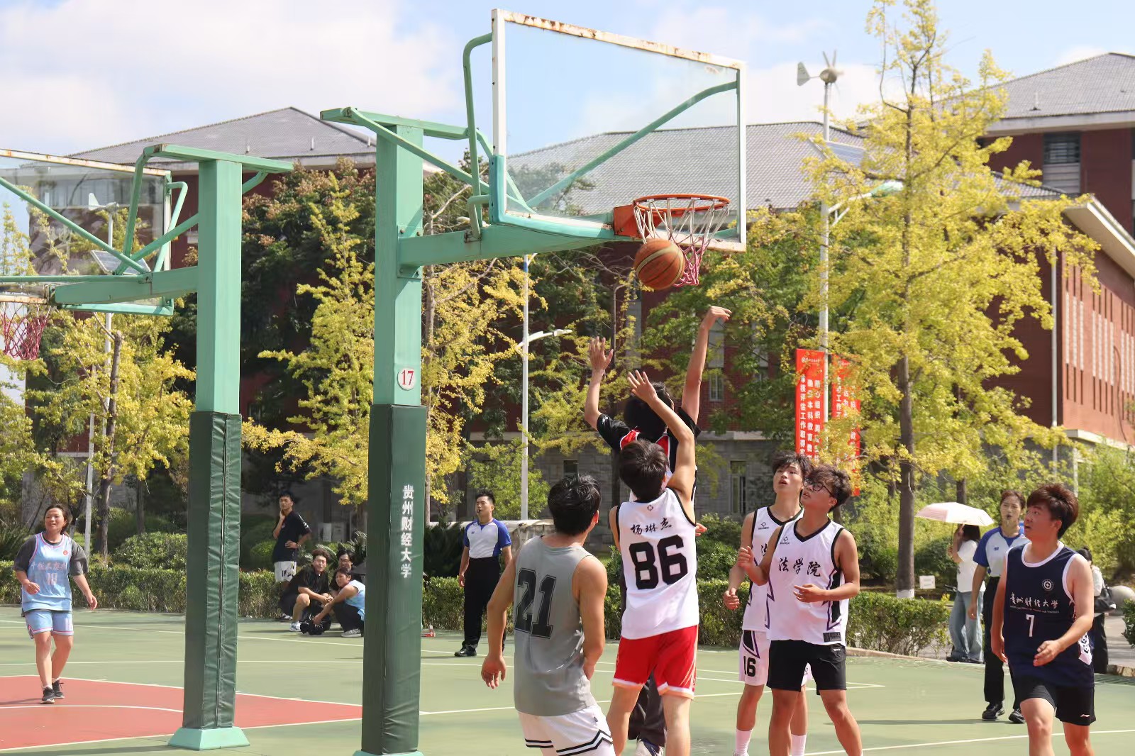(法学院 石姗姗 报道|摄影 新媒体部)10月12日,法学院第五届“迎新杯”篮球赛正式拉开战幕,赛事火力全开点燃校园激情。各年级学子组成的篮球队轮番登场,在赛场上展开激烈角逐,用汗水与拼搏诠释青春活力,现场呐喊声、助威声此起彼伏。