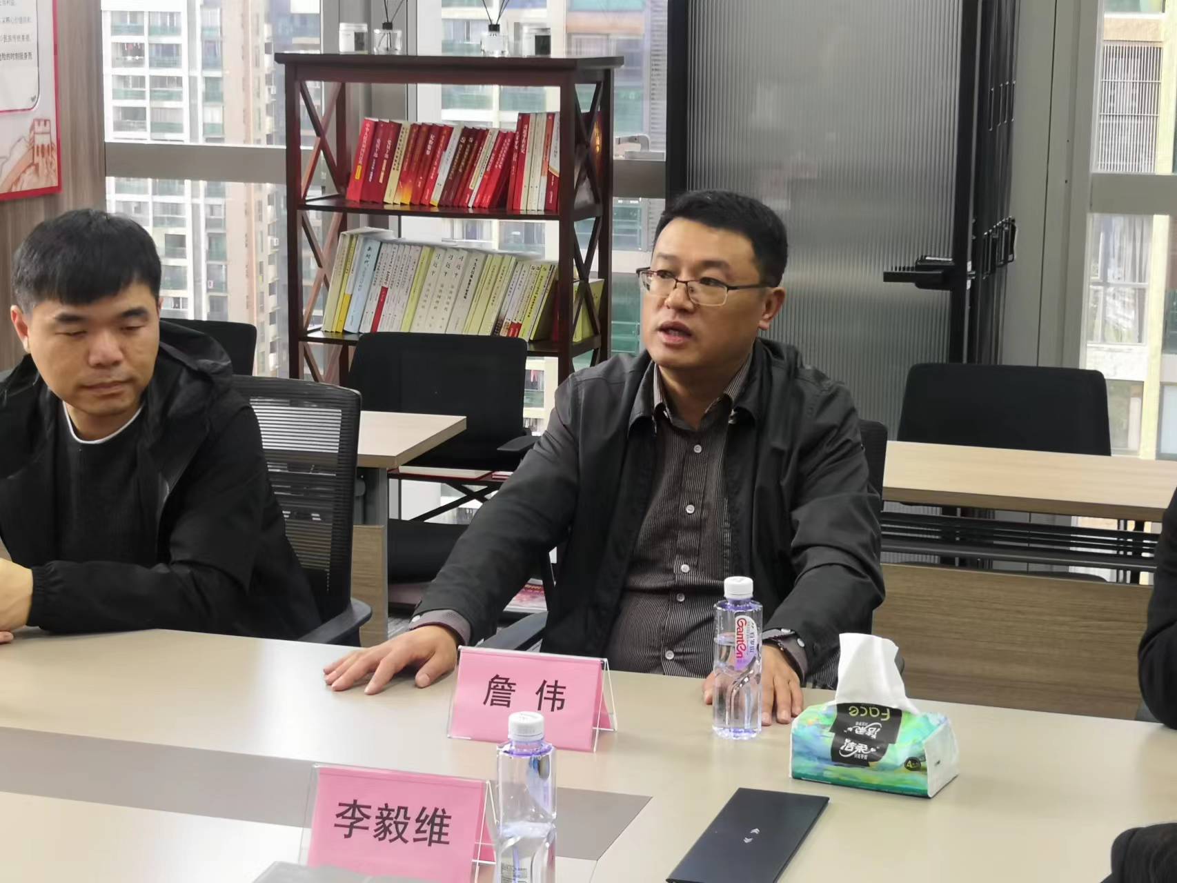 詹伟一行首先参观了坤源衡泰律所的日常工作和休息环境。在随后进行的交流座谈中,詹伟听取了坤源衡泰律所的基本情况介绍和对于合作的展望,他讲到加强与校外单位尤其是与我院专业密切相关的律所合作,对培养学生成长成才有着重要意义;去年在坤源衡泰律所的支持下,乐竞在线注册举办的“模拟法庭大赛”在全校范围内产生了较好的反响,有效的促进了学生对法律专业知识的理解和应用。他强调希望能够借助律所在实务技能方面的优势和经验,充分发挥“实践教学基地”实践育人作用,帮助我院学子在专业能力、实践经验等方面有进一步的提升。