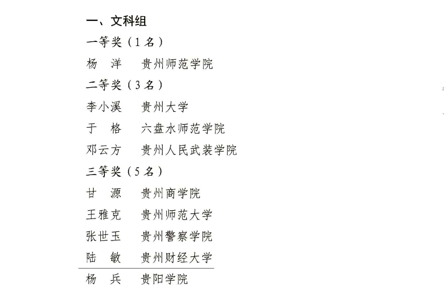 (法学院 图文/报道 陈体贵)在10月14日《省教育厅、省总工会关于表彰2022年贵州省高校青年教师教学竞赛获奖人员和单位的决定》公布的名单中,我院青年教师陆敏获文科组三等奖。