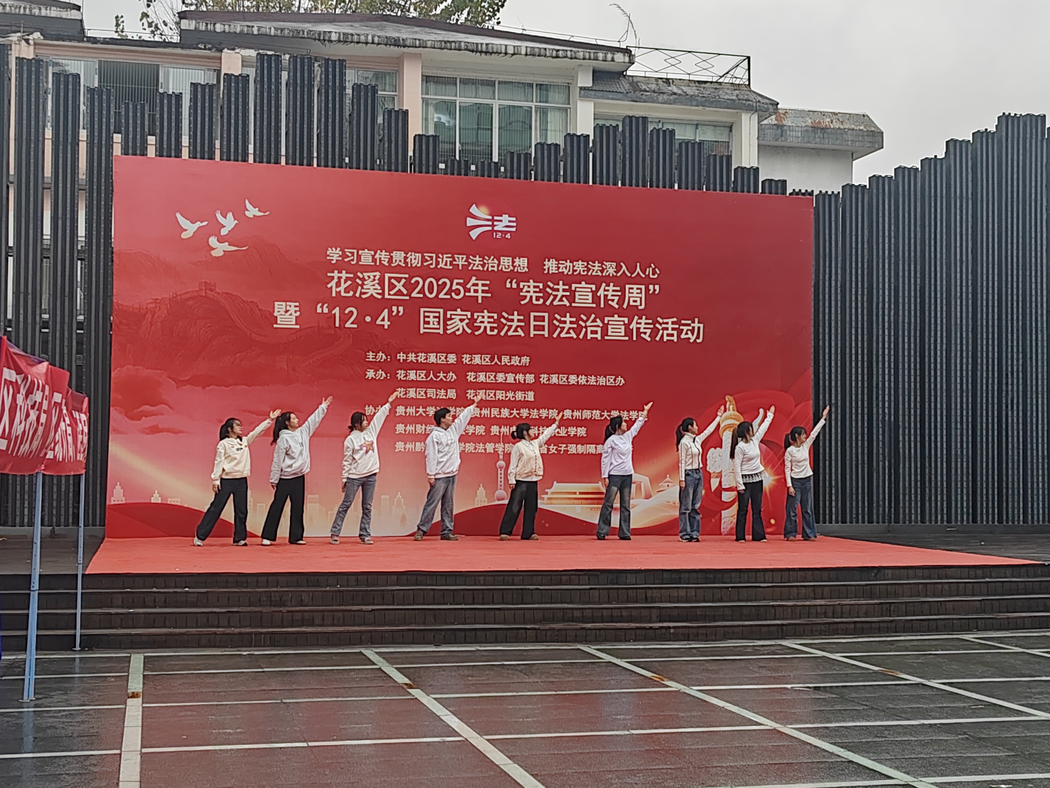 2025年12月4日,我国第十二个国家宪法日当天,花溪区十字街社区清华广场人头攒动、暖意融融。由中共花溪区委、花溪区人民政府主办,花溪区司法局人大办、花溪区委宣传部、花溪区委依法治区办、花溪区司法局、花溪区阳光街道承办,乐竞在线注册等6所高校协办的"学习宣传贯彻习近平法治思想,推动宪法深入人心"国家宪法日法治宣传活动在此隆重举行。