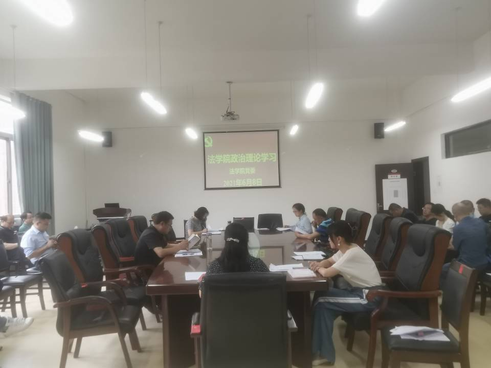 2021年6月8日下午,法学院党委在文德楼A8-310会议室组织召开“深刻铭记中国共产党百年奋斗的光辉历程(三)(改革开放和社会主义现代化建设新时期)”政治理论学习集体研讨会议。院领导及全院教职工出席会议,院党委书记詹伟主持会议。